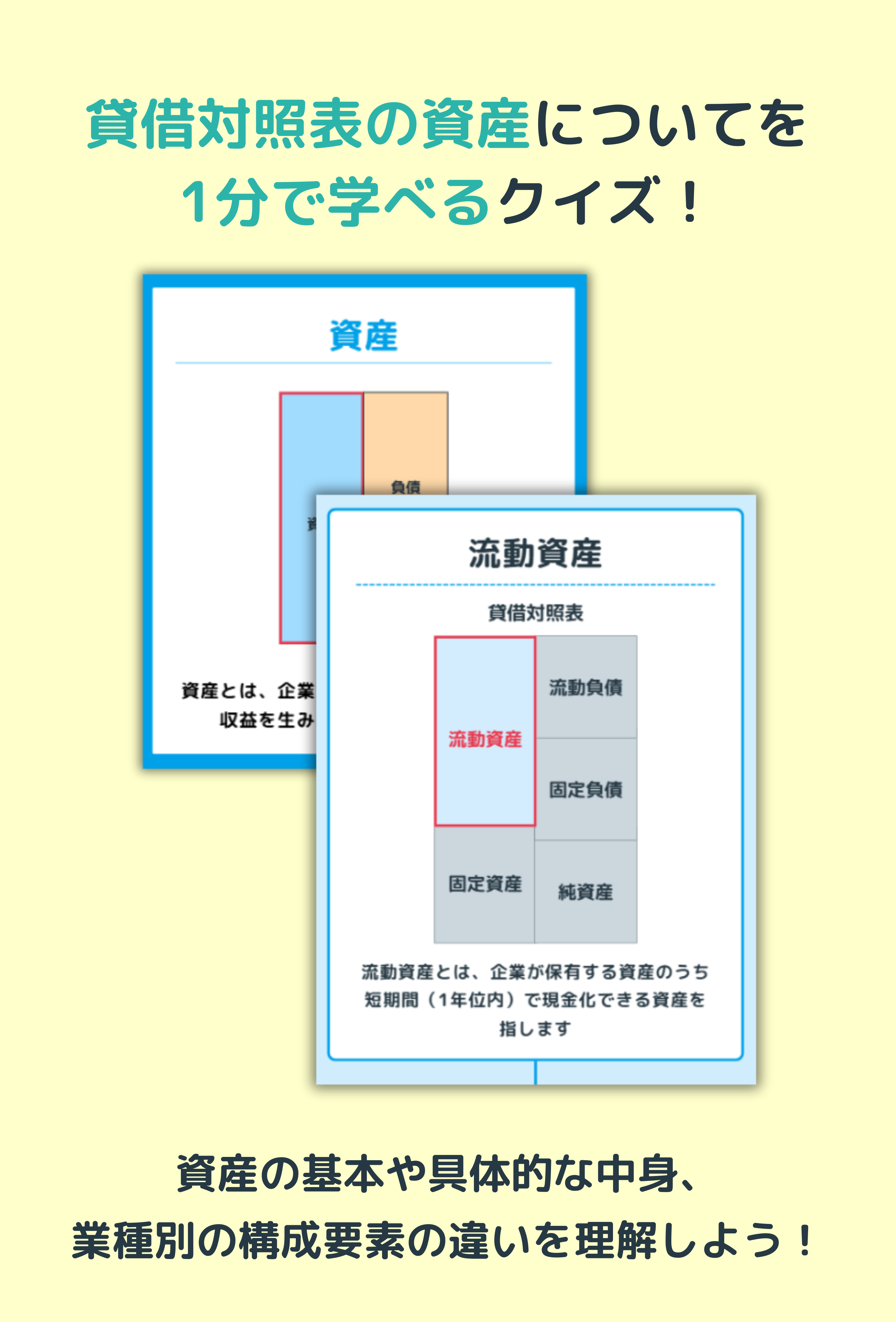 資産の特徴と業種による資産構成の違いについて1分で学べるクイズです。